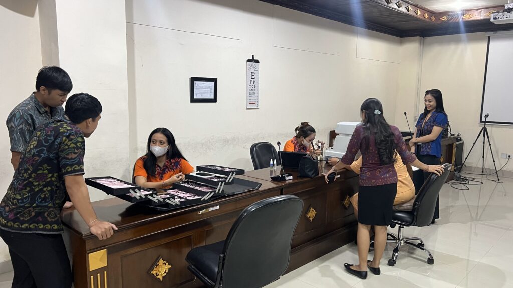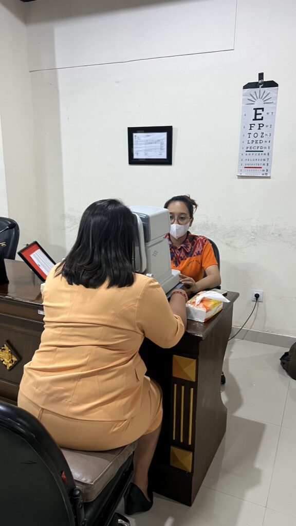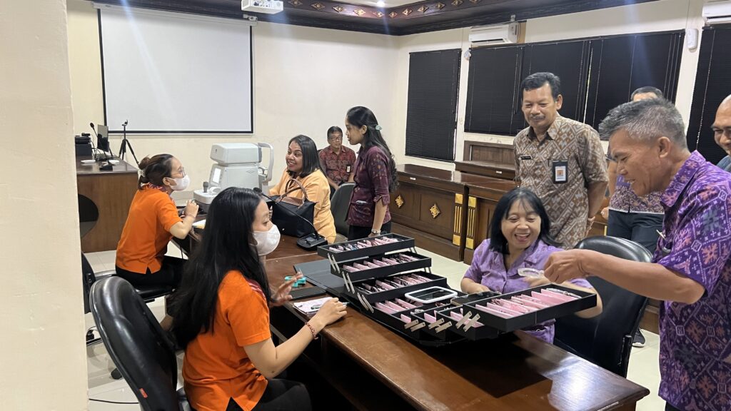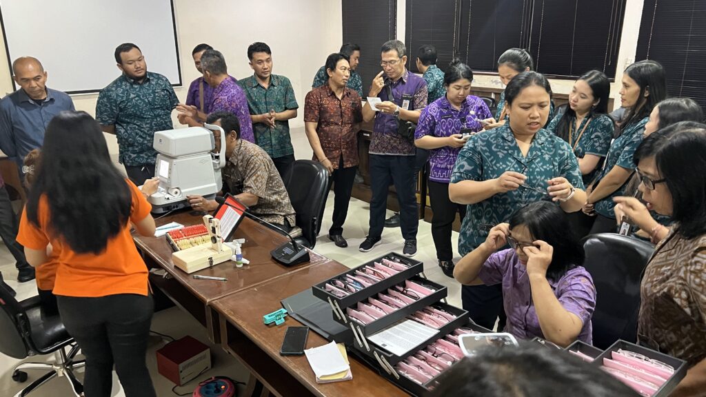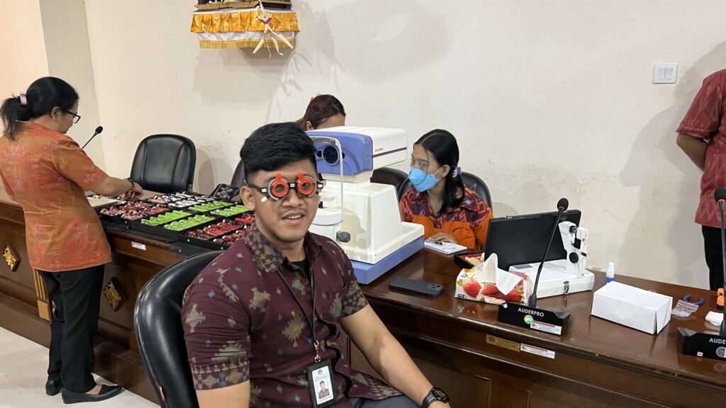 Jumat, 7 Juni 2024 Keluarga besar Biro Umum dan Protokol Setda Provinsi Bali mengikuti serangkaian tahapan pemeriksaan mata oleh Nirmala Optic. Bertempat di Ruang Rapat Biro Umum dan Protokol Setda Provinsi Bali, pemeriksaan mata ini telah menggunakan sistem komputerisasi sehingga hasil pemeriksaan dapat lebih akurat. Pemeriksaan mata secara gratis ini disambut antusias oleh seluruh staf guna mengetahui gangguan yang dialami pada mata, mengingat aktivitas dan pekerjaan kantor yang tidak lepas dari komputer/laptop, dan alat digital lainnya. Selain menyediakan pemeriksaan mata gratis, Nirmala Optic juga menawarkan pembelian kaca mata dengan berbagai model dan design dengan harga yang terjangkau.