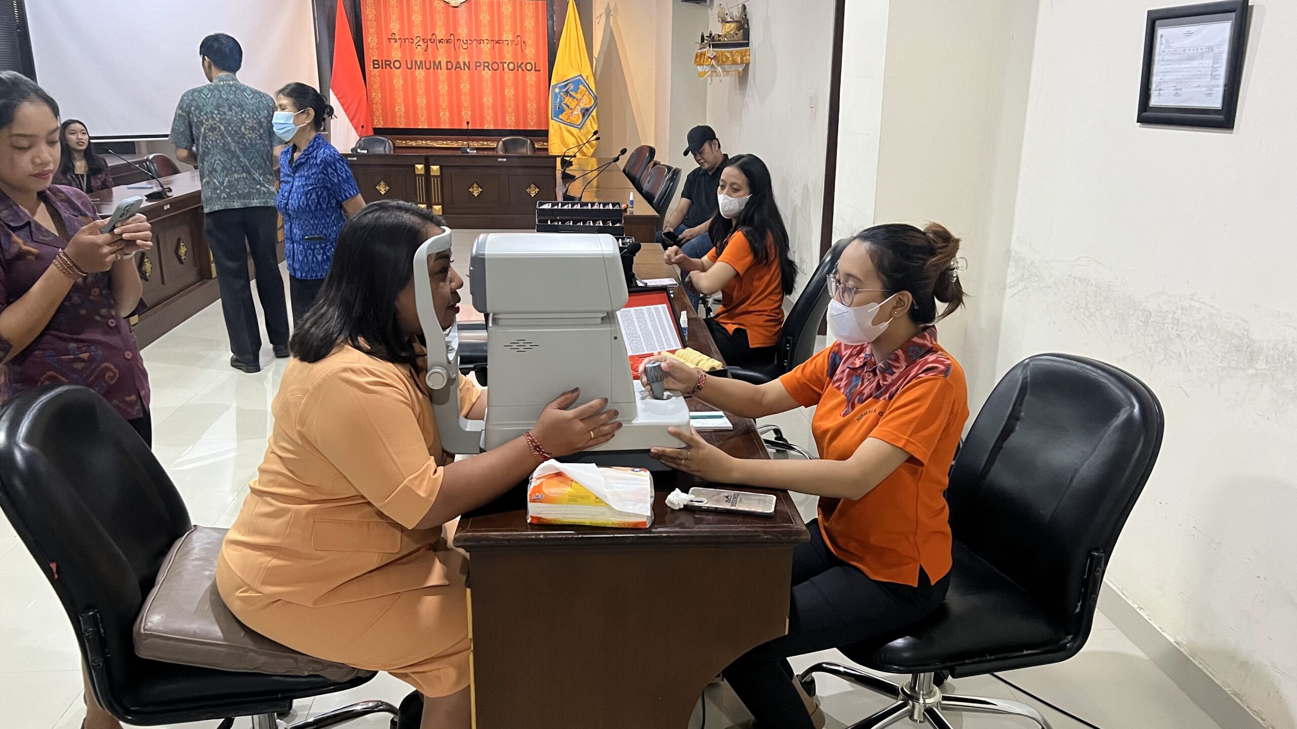 Jumat, 7 Juni 2024 Keluarga besar Biro Umum dan Protokol Setda Provinsi Bali mengikuti serangkaian tahapan pemeriksaan mata oleh Nirmala Optic. Bertempat di Ruang Rapat Biro Umum dan Protokol Setda Provinsi Bali, pemeriksaan mata ini telah menggunakan sistem komputerisasi sehingga hasil pemeriksaan dapat lebih akurat. Pemeriksaan mata secara gratis ini disambut antusias oleh seluruh staf guna mengetahui gangguan yang dialami pada mata, mengingat aktivitas dan pekerjaan kantor yang tidak lepas dari komputer/laptop, dan alat digital lainnya. Selain menyediakan pemeriksaan mata gratis, Nirmala Optic juga menawarkan pembelian kaca mata dengan berbagai model dan design dengan harga yang terjangkau.