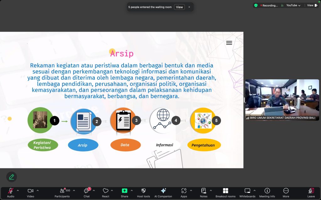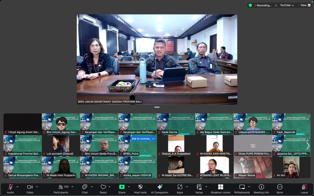 Denpasar, 01/08/2025 – Dalam rangka pengembangan kompetensi bagi ASN Tahun 2025 dilingkungan Pemerintah Provinsi Bali, Biro Umum Sekretariat Daerah Provinsi Bali melaksanakan Parade Pengembangan Kompetensi melalui media digital (webinar) ke-24 dengan tema “Peningkatan Kompetensi Digitalisasi Kearsipan untuk ASN”. Kegiatan ini dilaksanakan secara daring dan diikut oleh Pegawai ASN dan Non ASN dilingkungan Pemerintah Provinsi Bali.