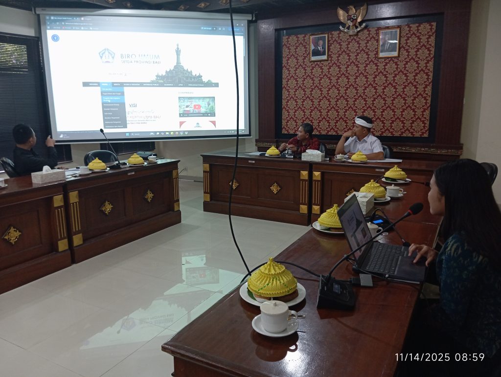 Jumat, 14 November 2025, Komisi Informasi Provinsi Bali melaksanakan visitasi ke Biro Umum Setda Provinsi Bali sebagai bagian dari rangkaian Monitoring dan Evaluasi Keterbukaan Informasi Publik (Monev KIP) Tahun 2025. Kegiatan ini bertujuan untuk melakukan verifikasi dan validasi atas jawaban yang telah diisi oleh Biro Umum pada kuesioner elektronik melalui sistem e-Monev.